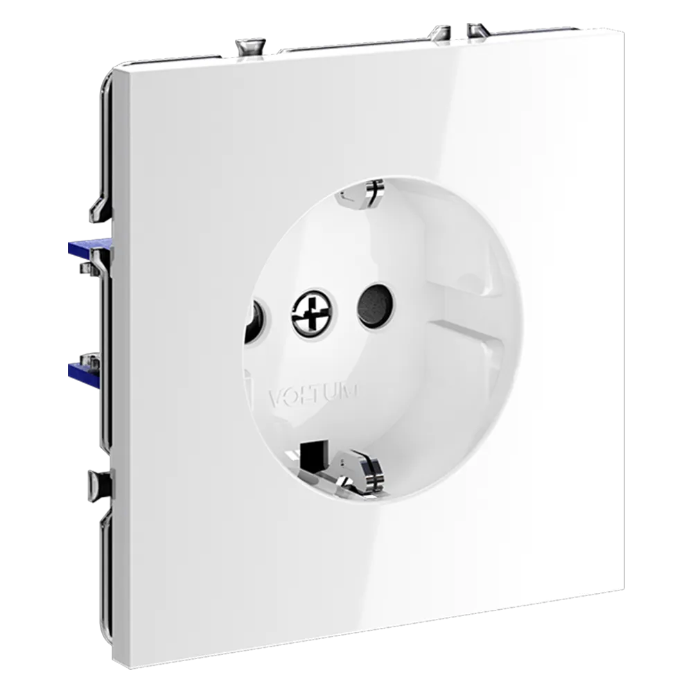 Розетка встраиваемая VOLTUM S70 с заземлением и защитными шторками 16А (белый глянцевый)