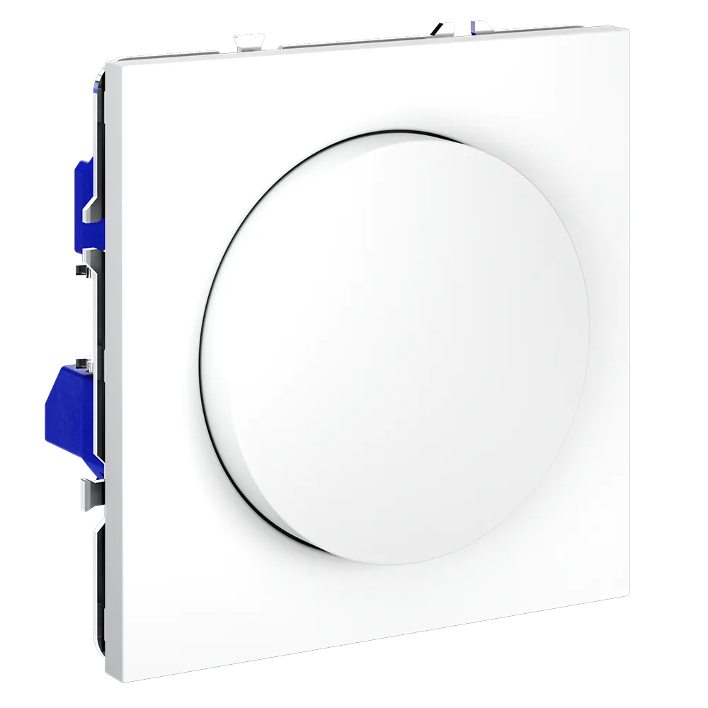 Устройство работает как полноценный выключатель (нажатие включает/выключает свет) и как диммер (поворот регулирует яркость от 5 до 600 Вт). Совместим с светодиодными, галогенными и лампами накаливания, поддерживающими фазовое диммирование, включая современные LED-источники благодаря технологии отсечки по заднему фронту — без мерцания, шума и резких скачков напряжения.