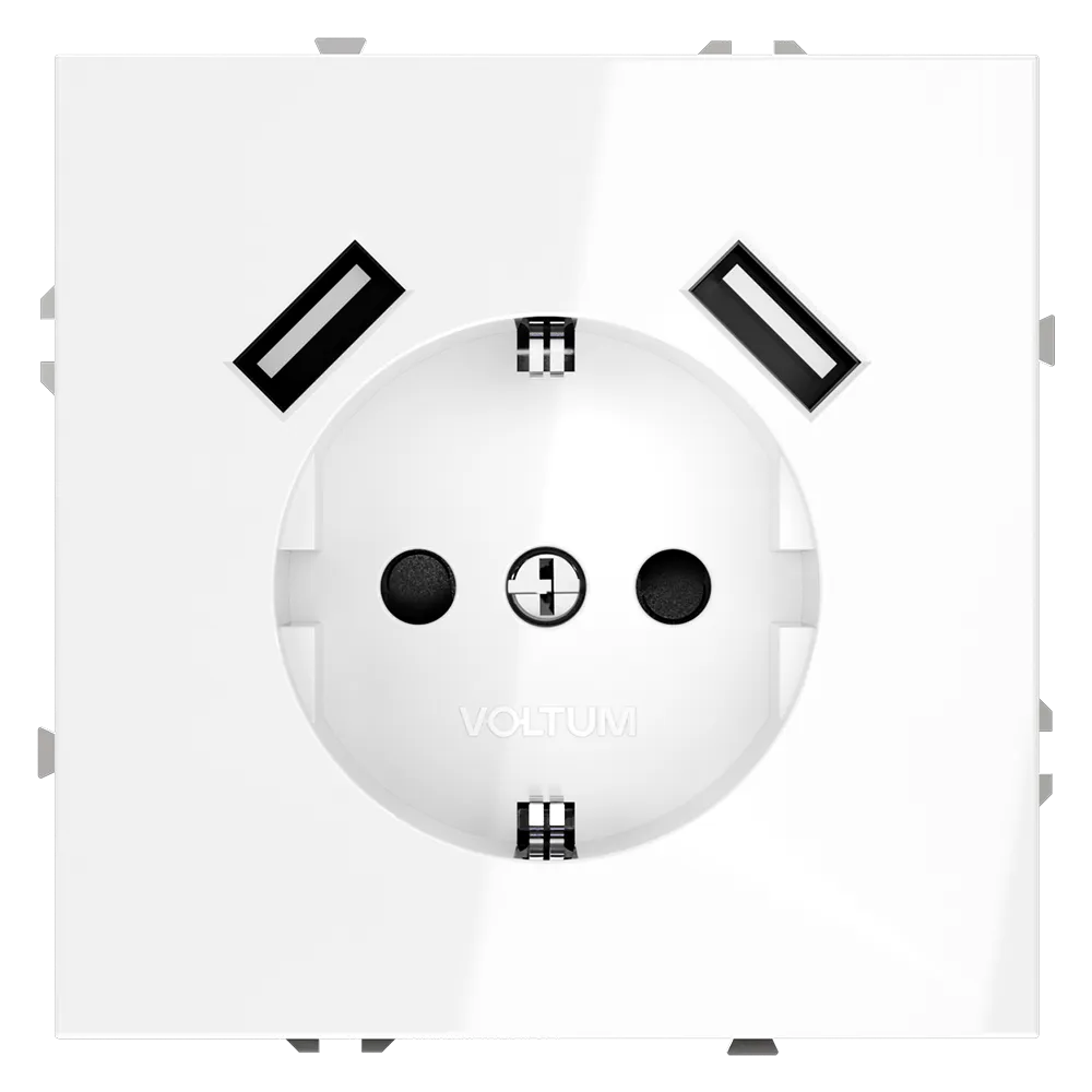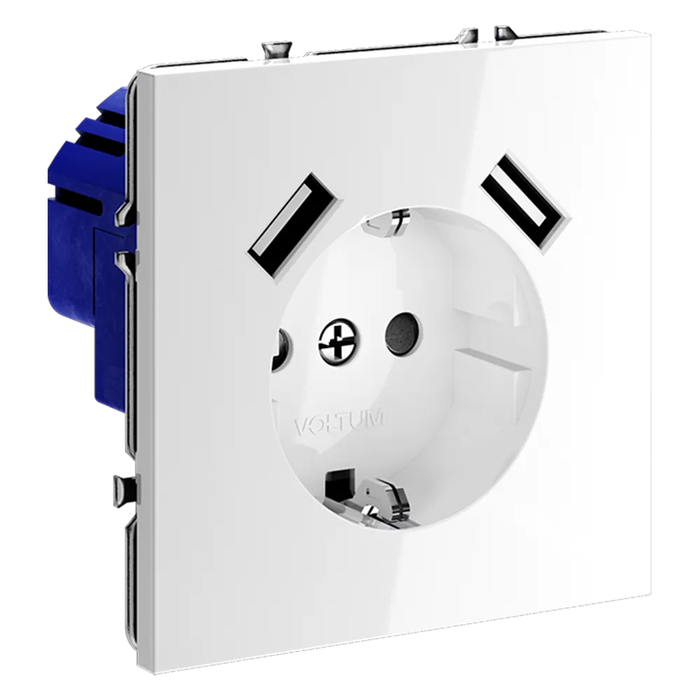 Розетка встраиваемая VOLTUM S70 с заземлением и защитными шторками 16А с USB A+А (белый глянцевый)