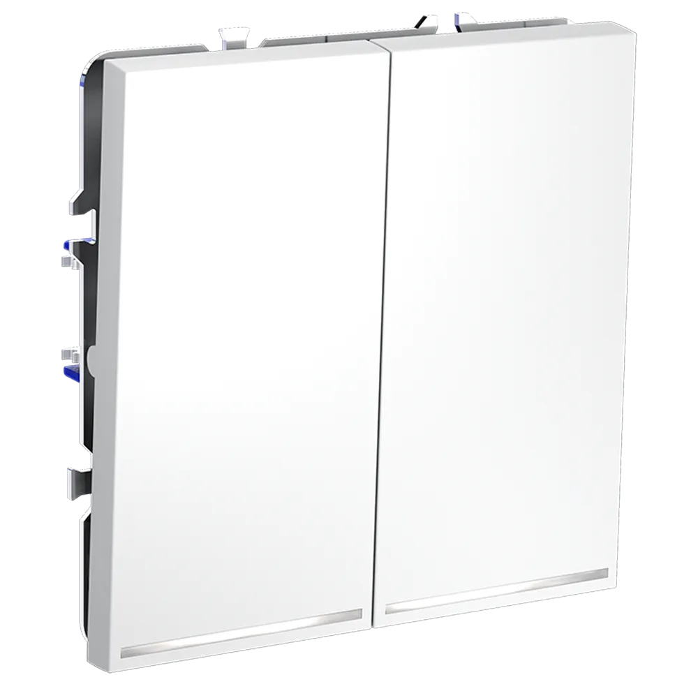 Каждая из двух клавиш работает как независимый проходной переключатель, позволяя управлять двумя световыми контурами (например, основным освещением и подсветкой) параллельно из разных мест. Это исключает необходимость возвращаться к первому выключателю и значительно повышает комфорт повседневного использования.